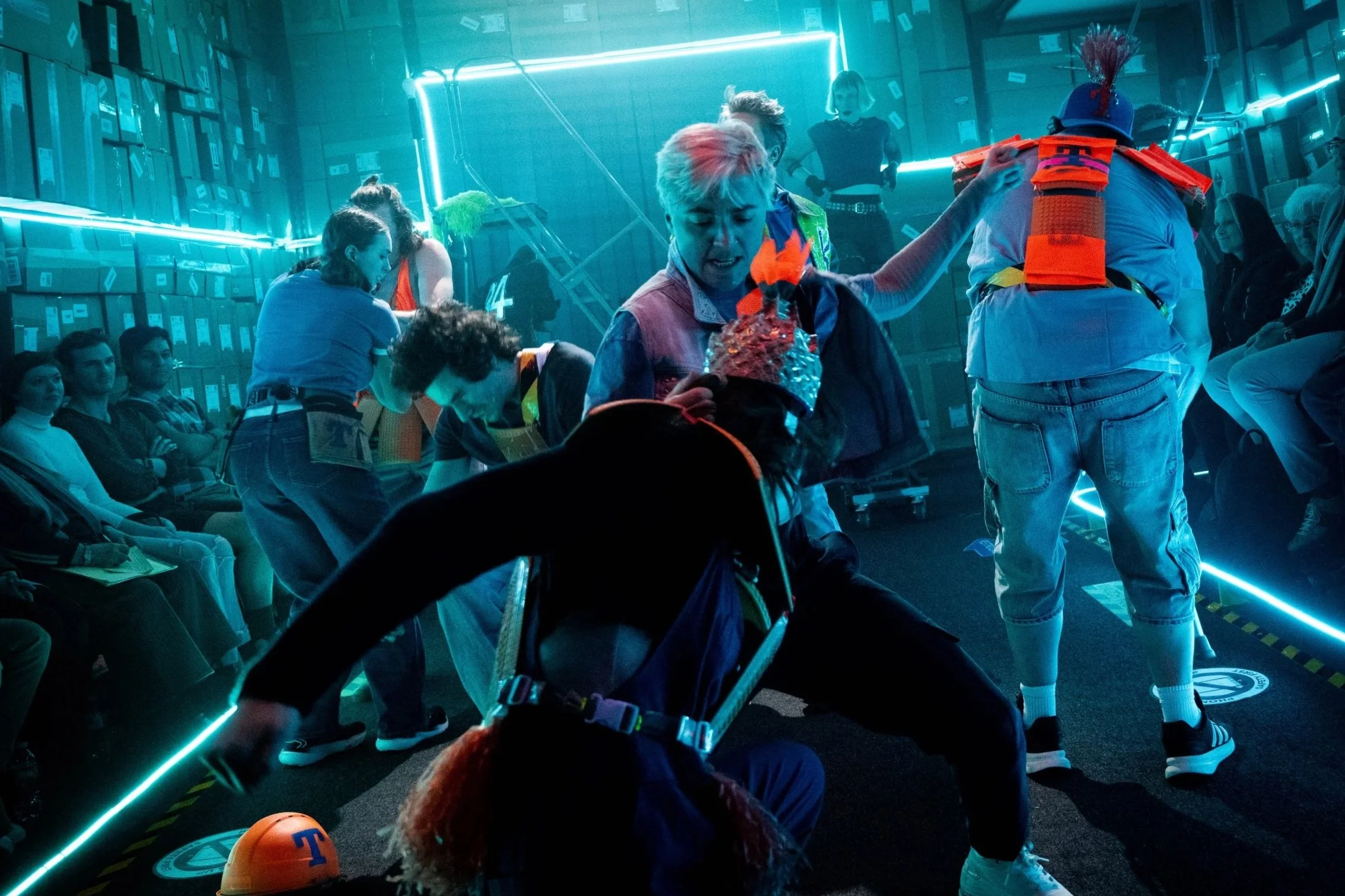 “The cast is exceptional, effortlessly toggling between their roles as warehouse workers and the high school characters they portray. […] ‘The Trojans’ triumphs in every sense. It’s a show that combines heart and a sense of mythic weight making for an unforgettable theatrical experience.”